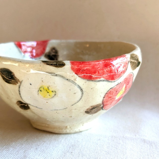 ★即納可能★ ご飯茶碗 椿の花 手びねり 小さめ