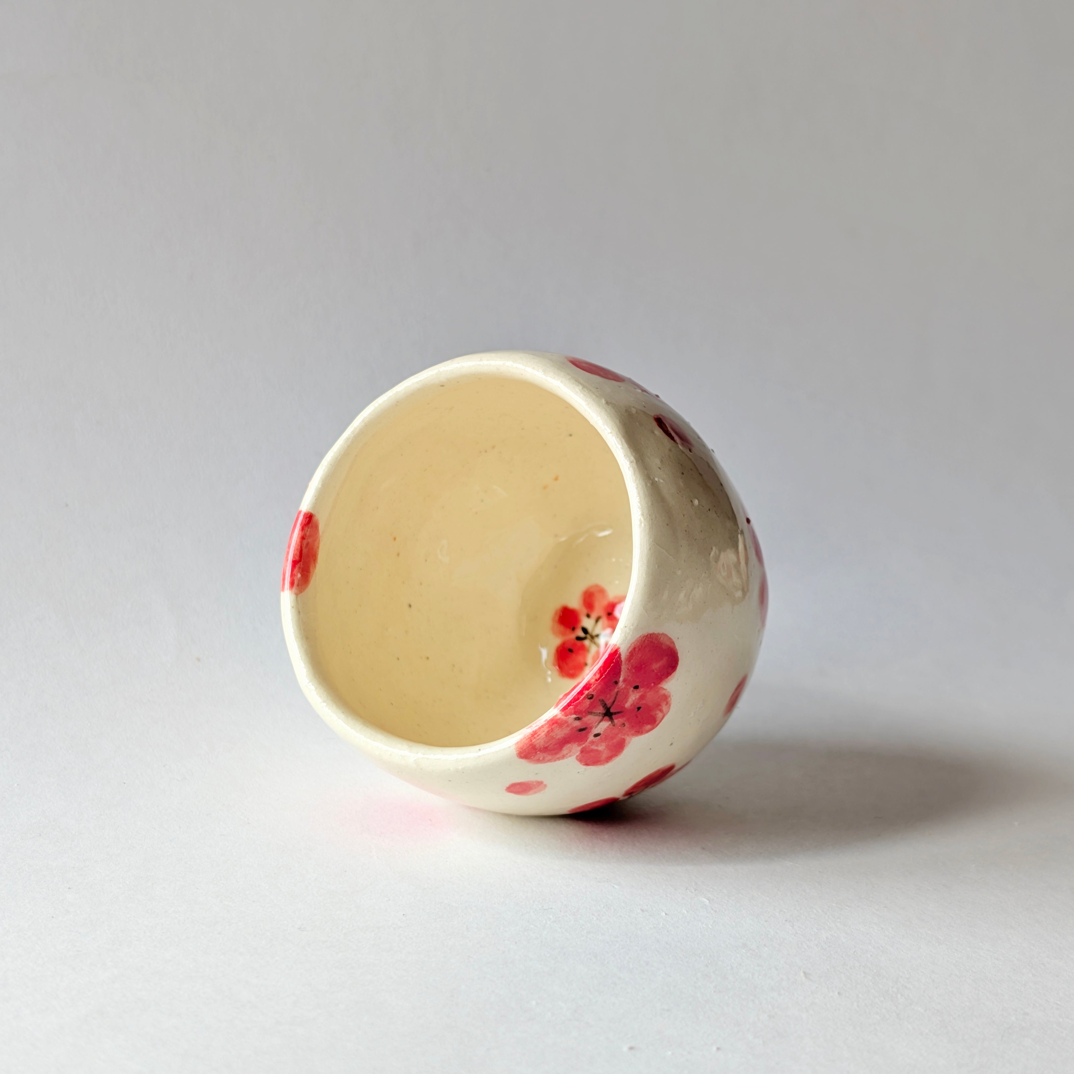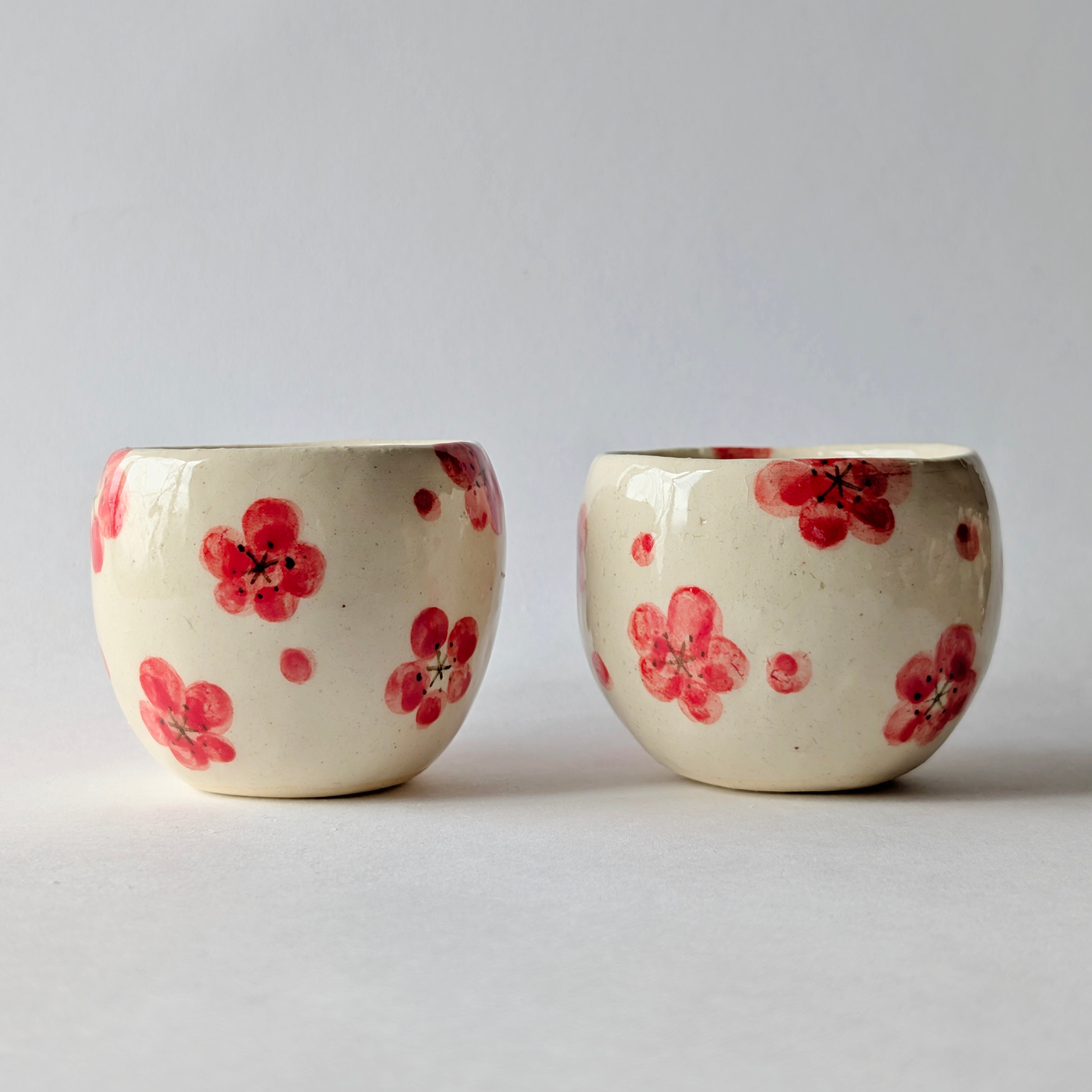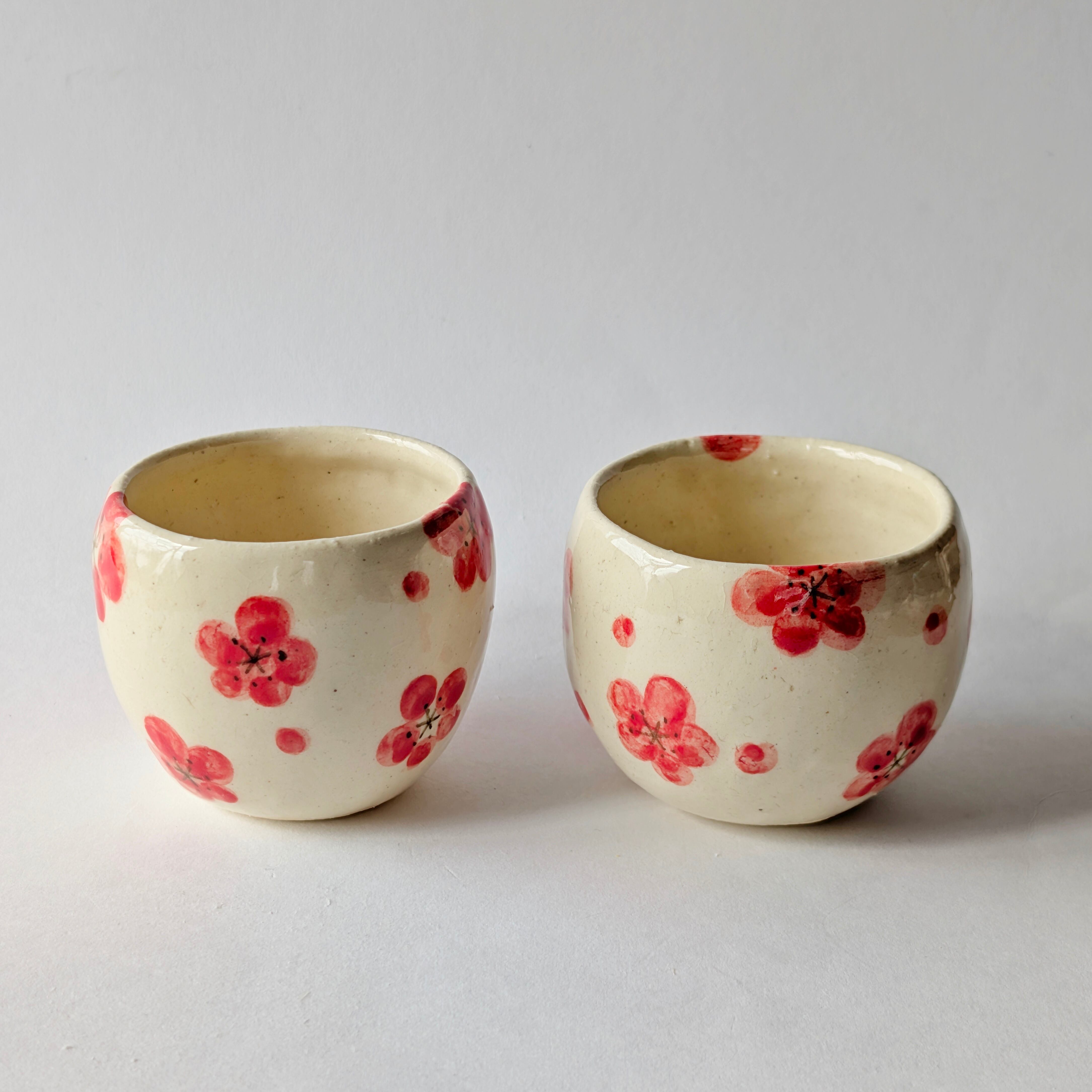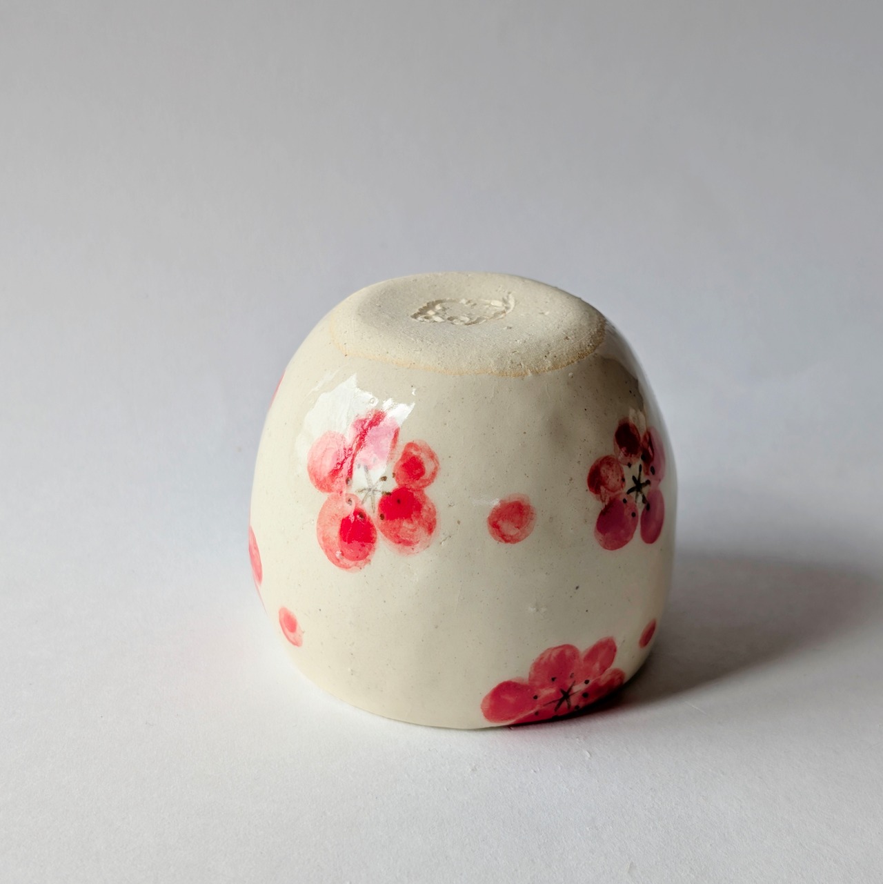 手びねり&手描きの梅の花模様|職人が一つ一つ手びねりし、丁寧に梅の花を描いた、温かみのあるおちょこです。