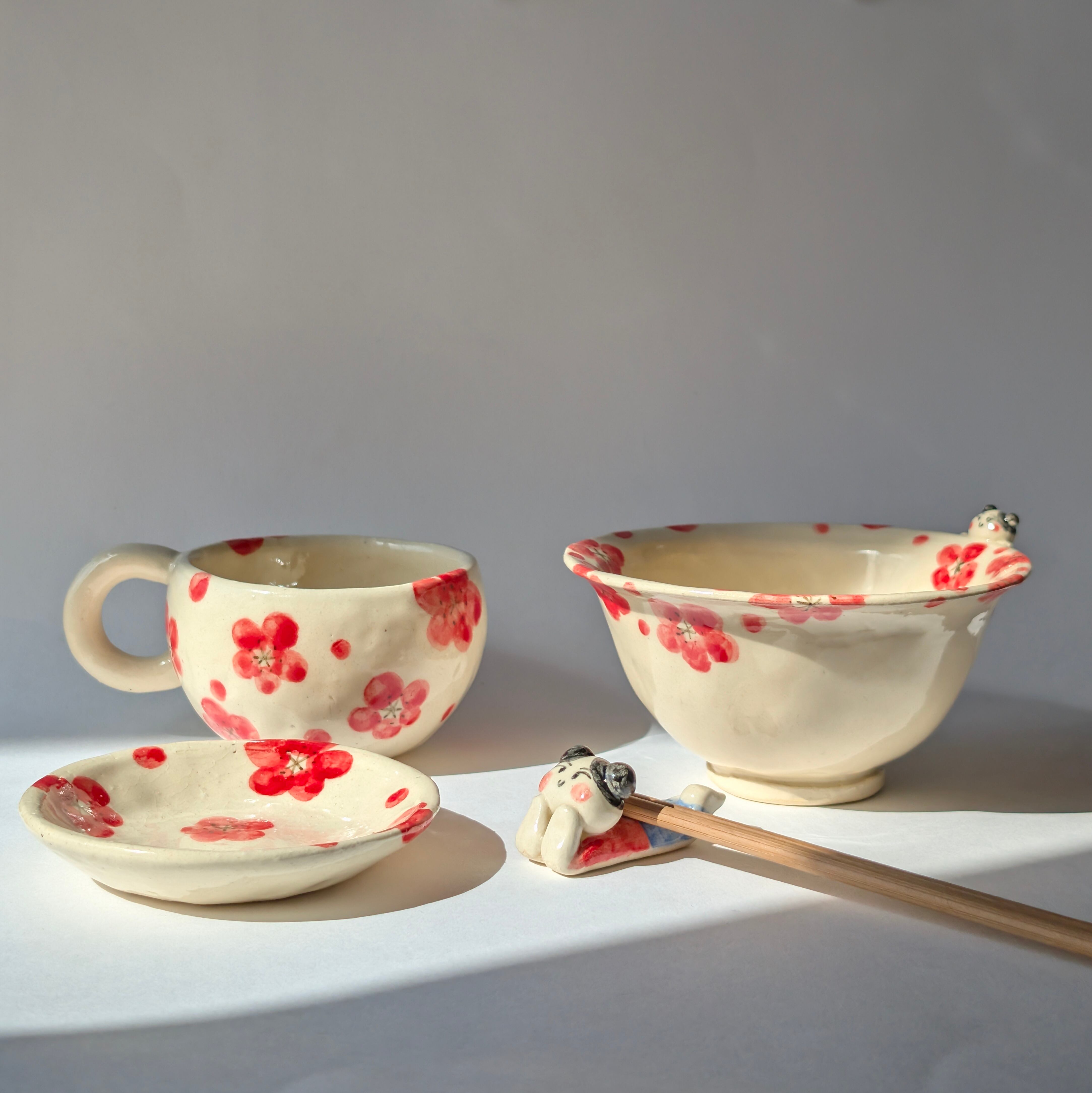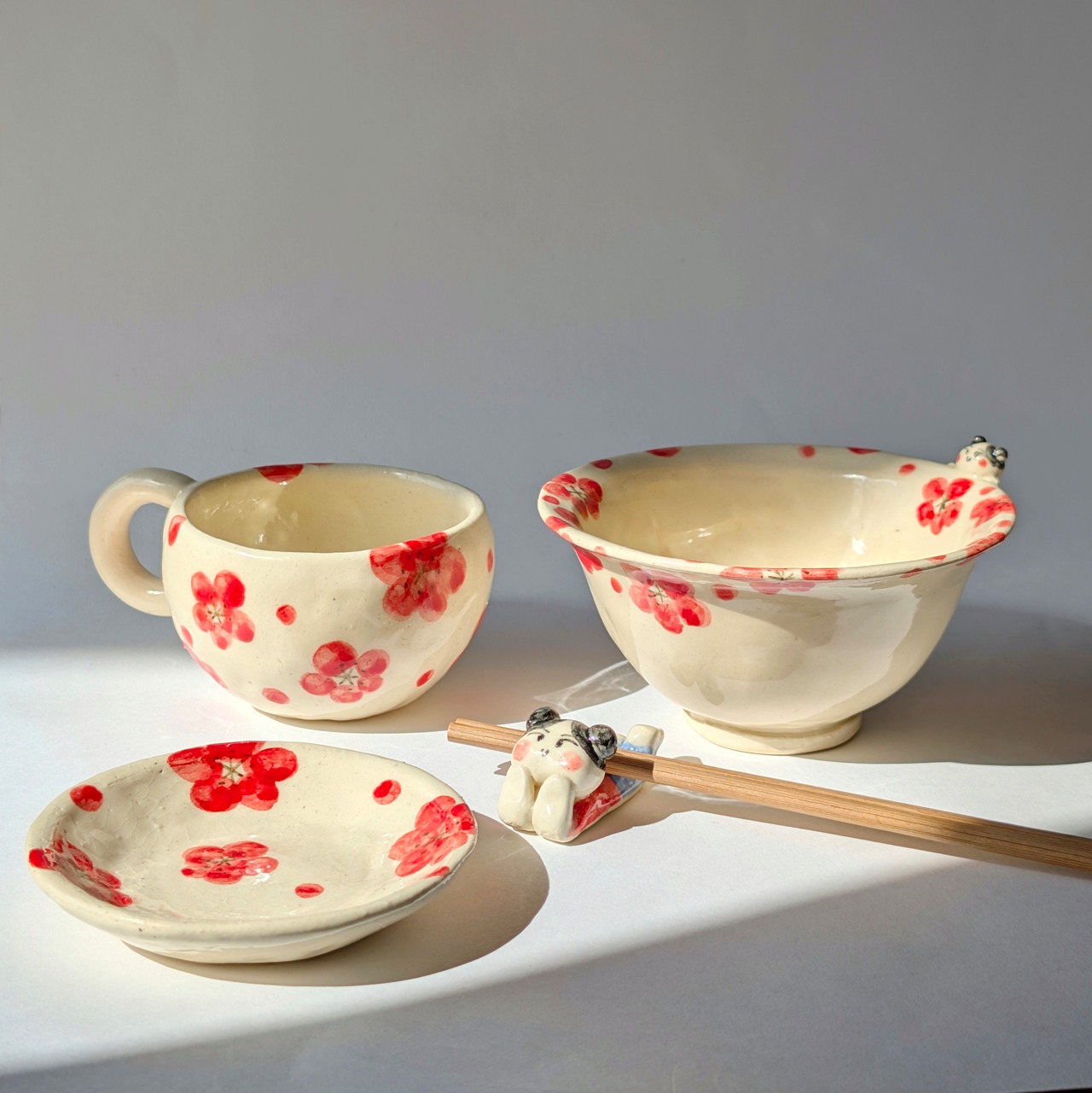 ❍ 同じ梅の花模様のうつわをセットで、さらに華やかに