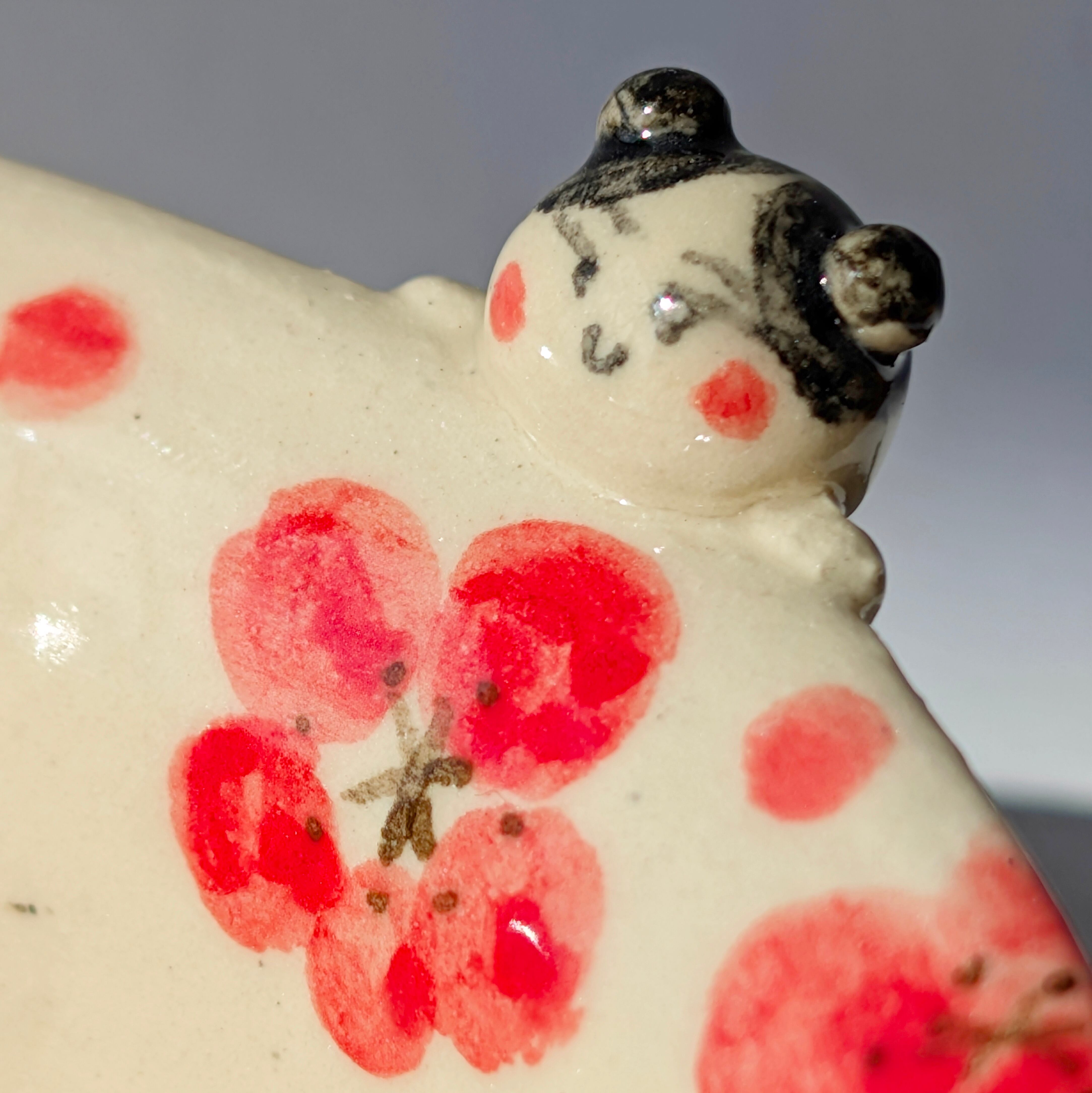 ・遊び心あふれるデザイン: 唐子が顔をのぞかせ、お花見をしているような、楽しいデザインです。