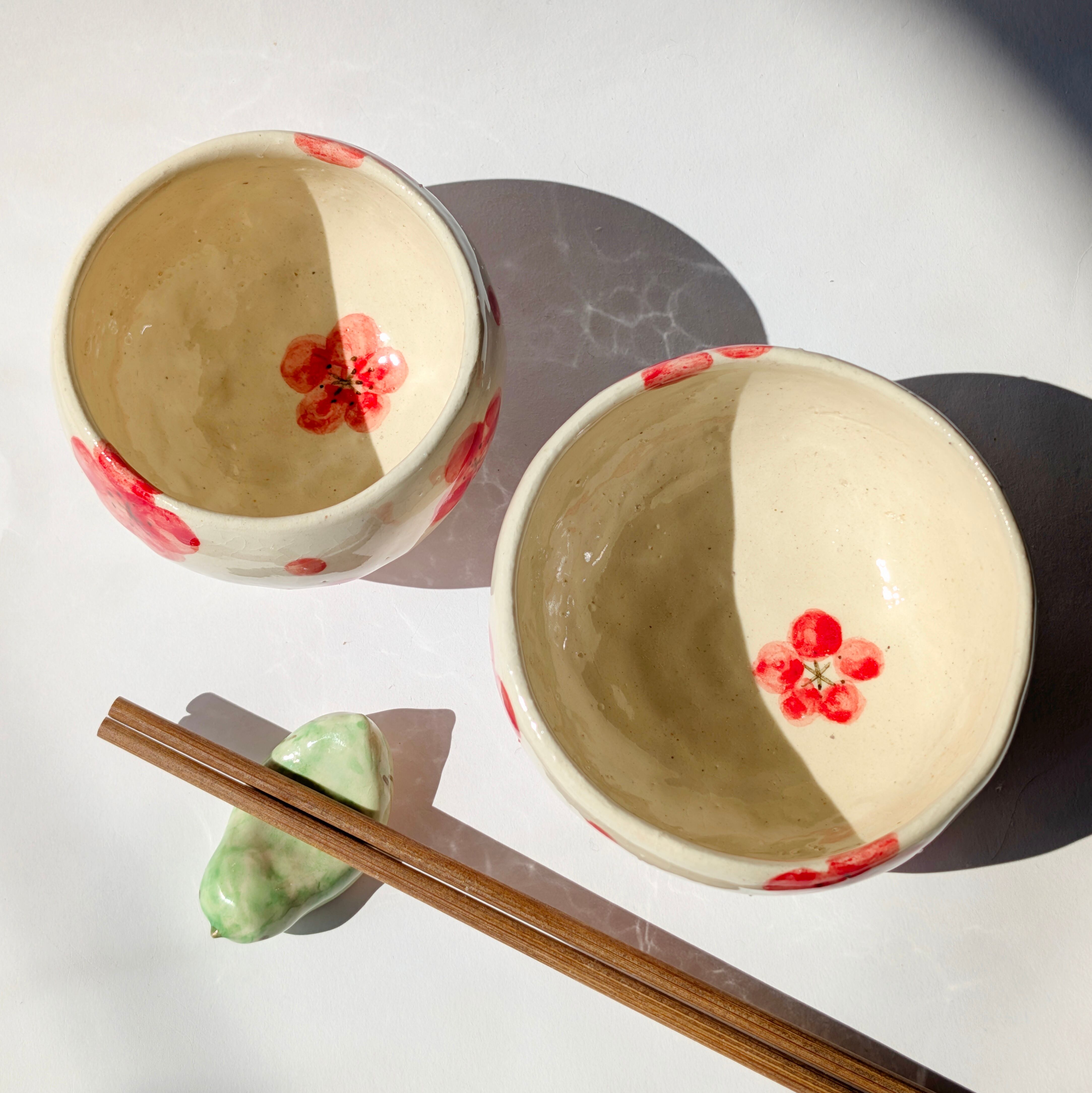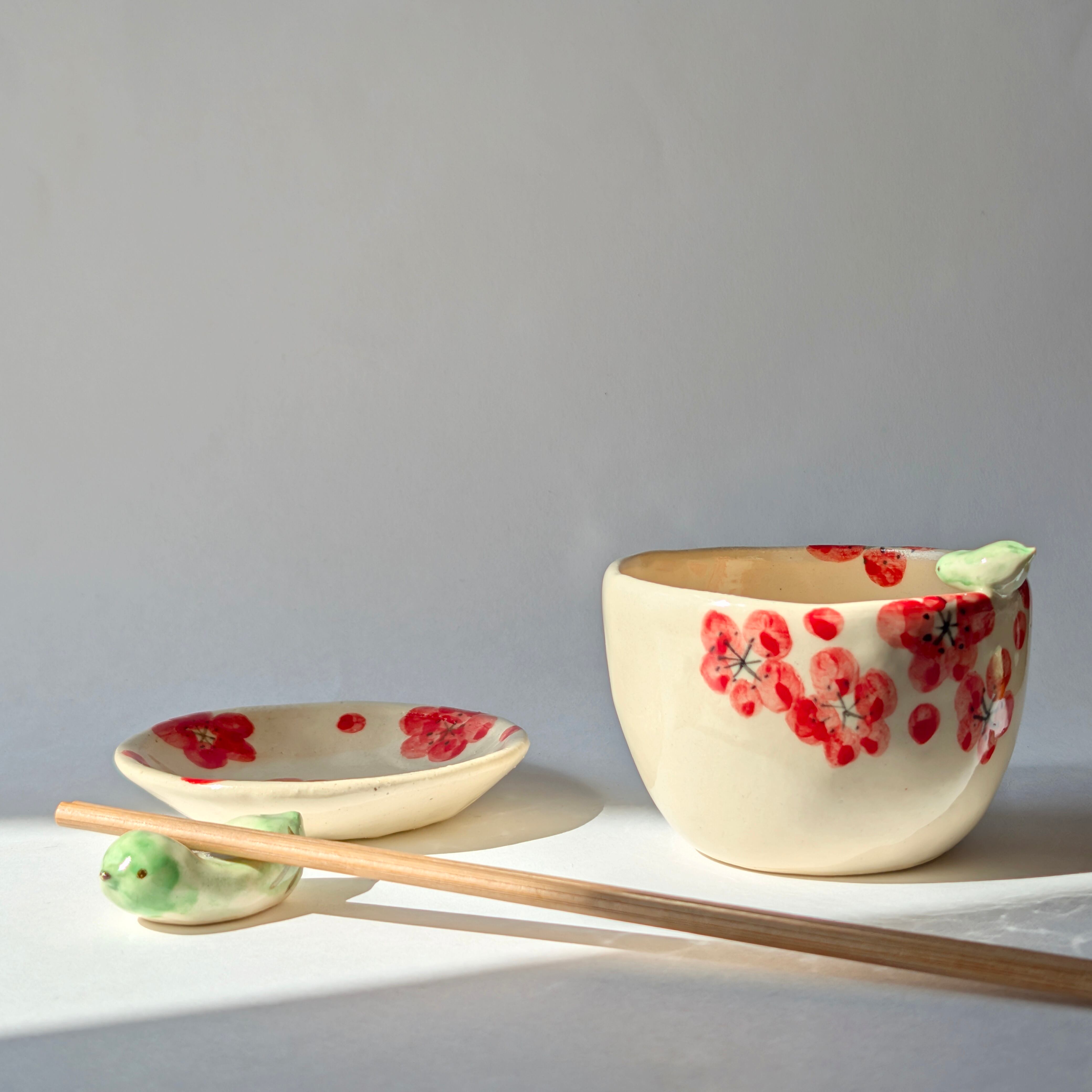 ❍ 同じ梅の花模様のうつわをセットで、さらに華やかに