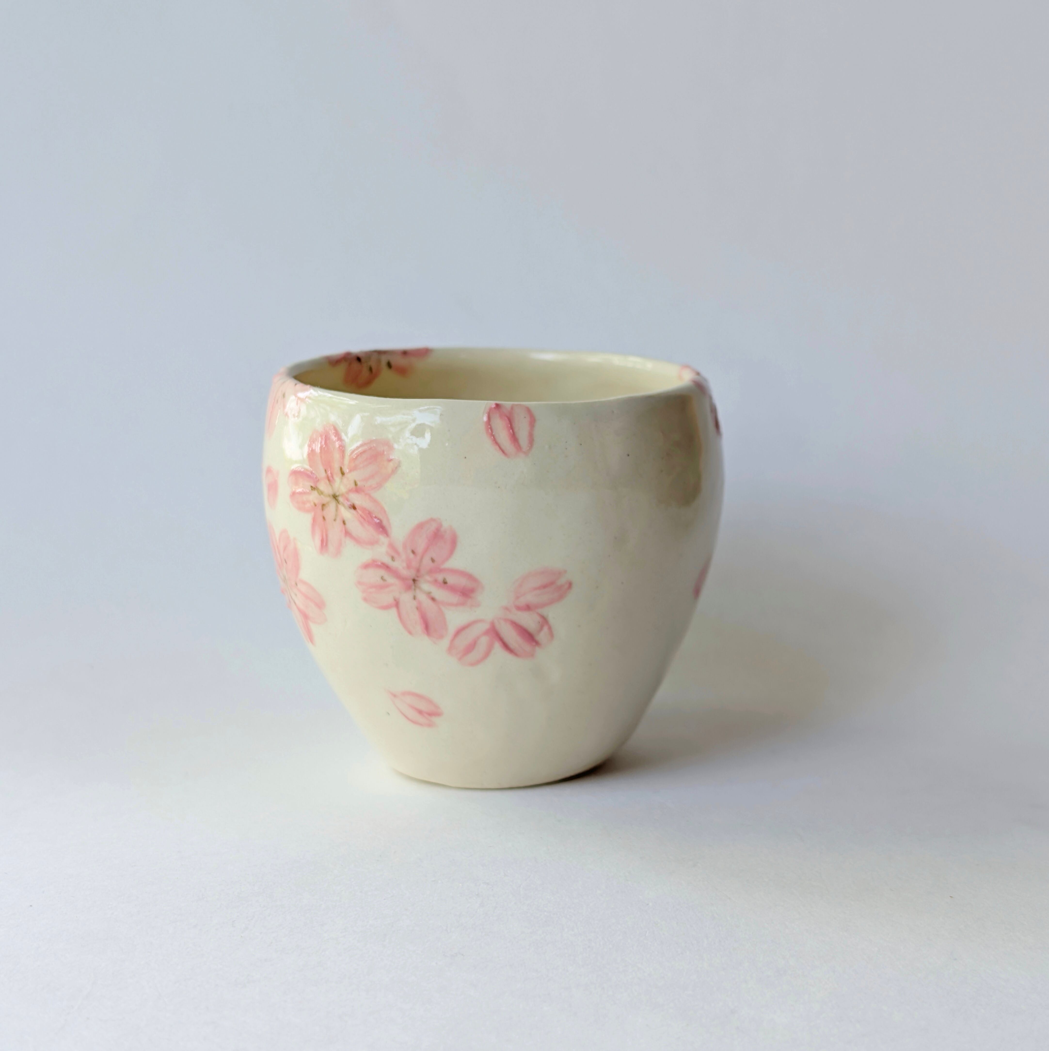 ふっくらとした優しいフォルムに、淡く可憐な桜の花が咲き誇る湯呑みです。手のひらに心地よく収まるサイズ感はそのままに、より一層愛着の湧くデザインへと生まれ変わりました。