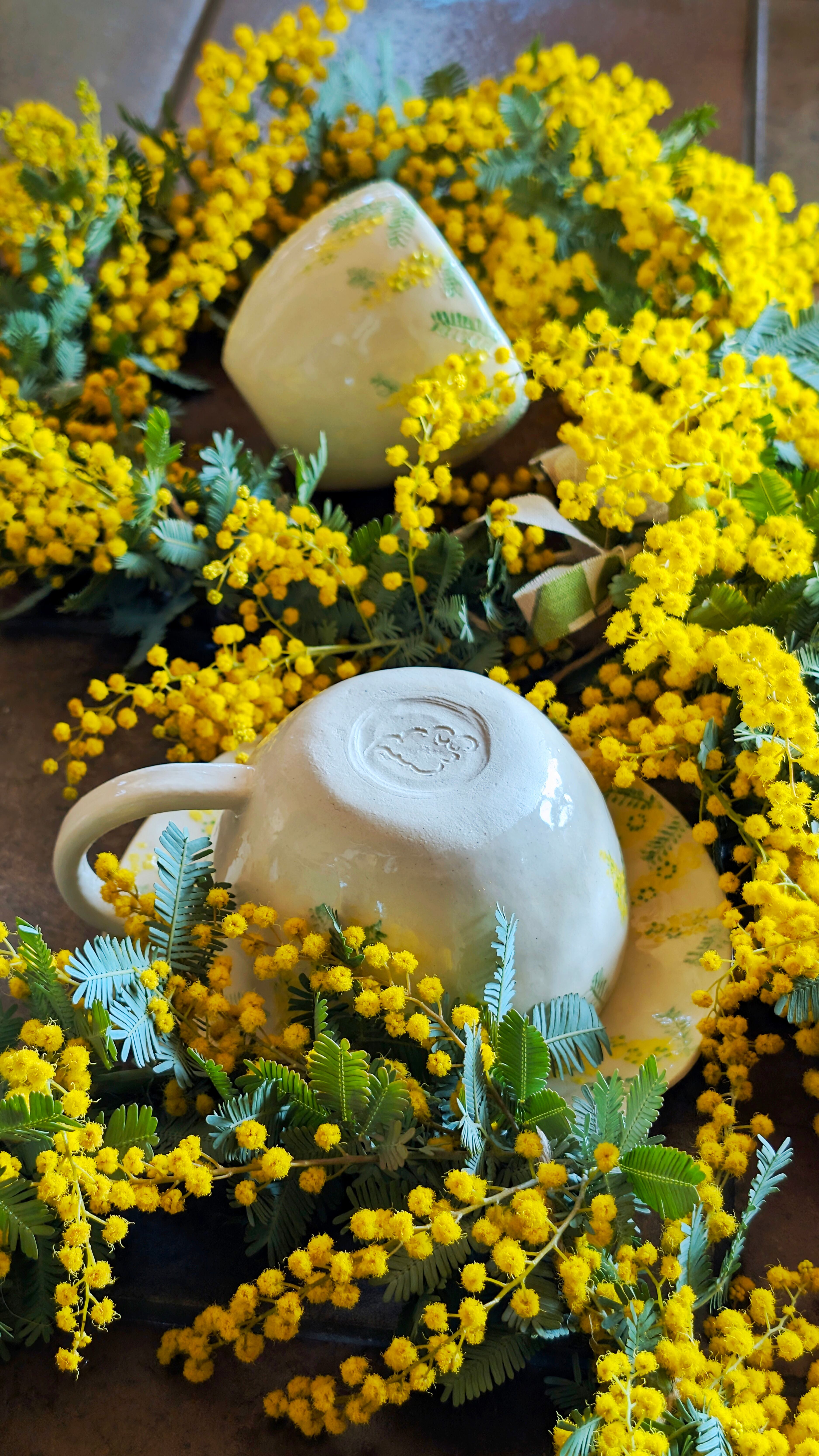 今回は、ミモザをイメージした「ミモザのうつわ」シリーズに合わせて製作しました。