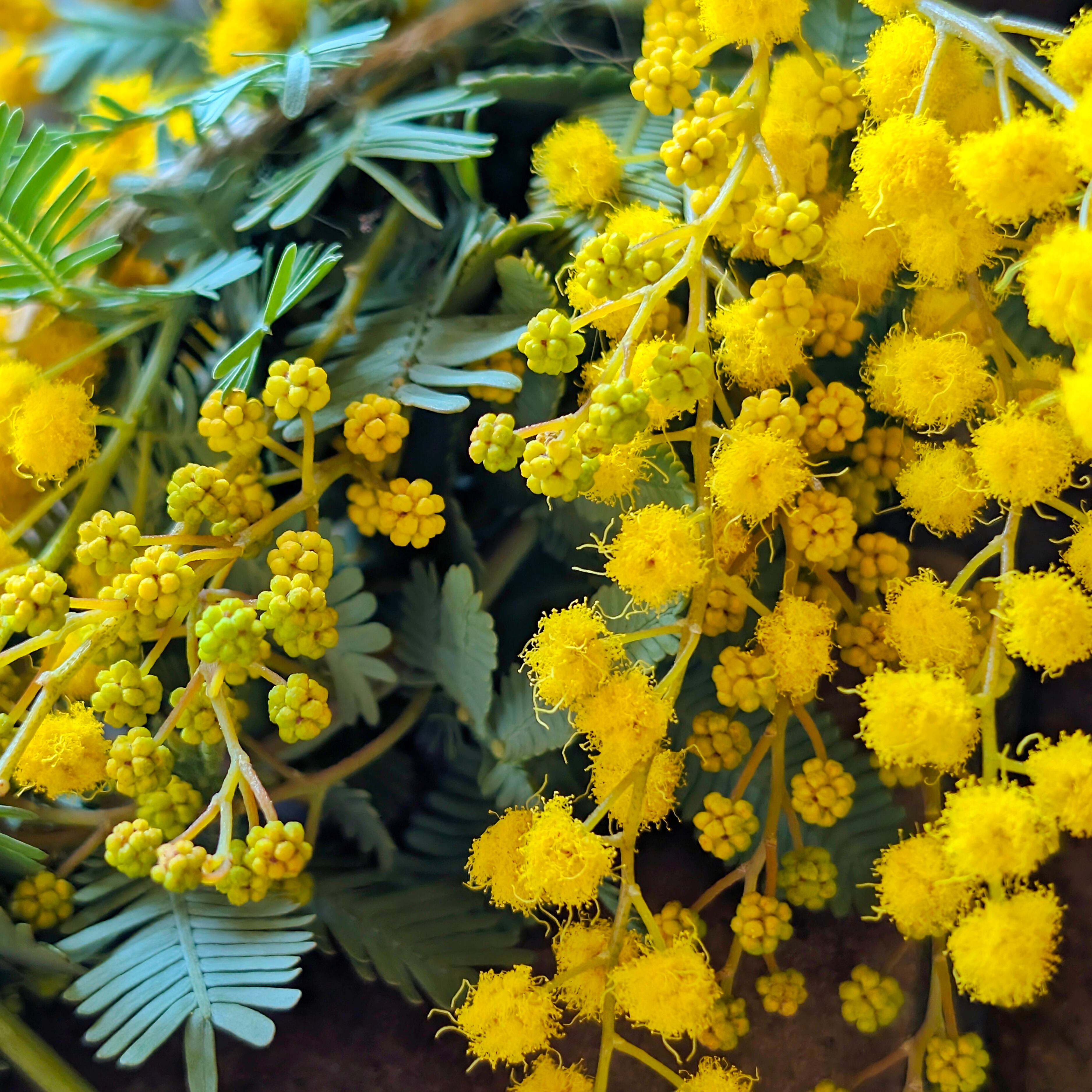 しののめラボの自家庭園で、太陽の光をたっぷり浴びて育った無農薬ミモザ。