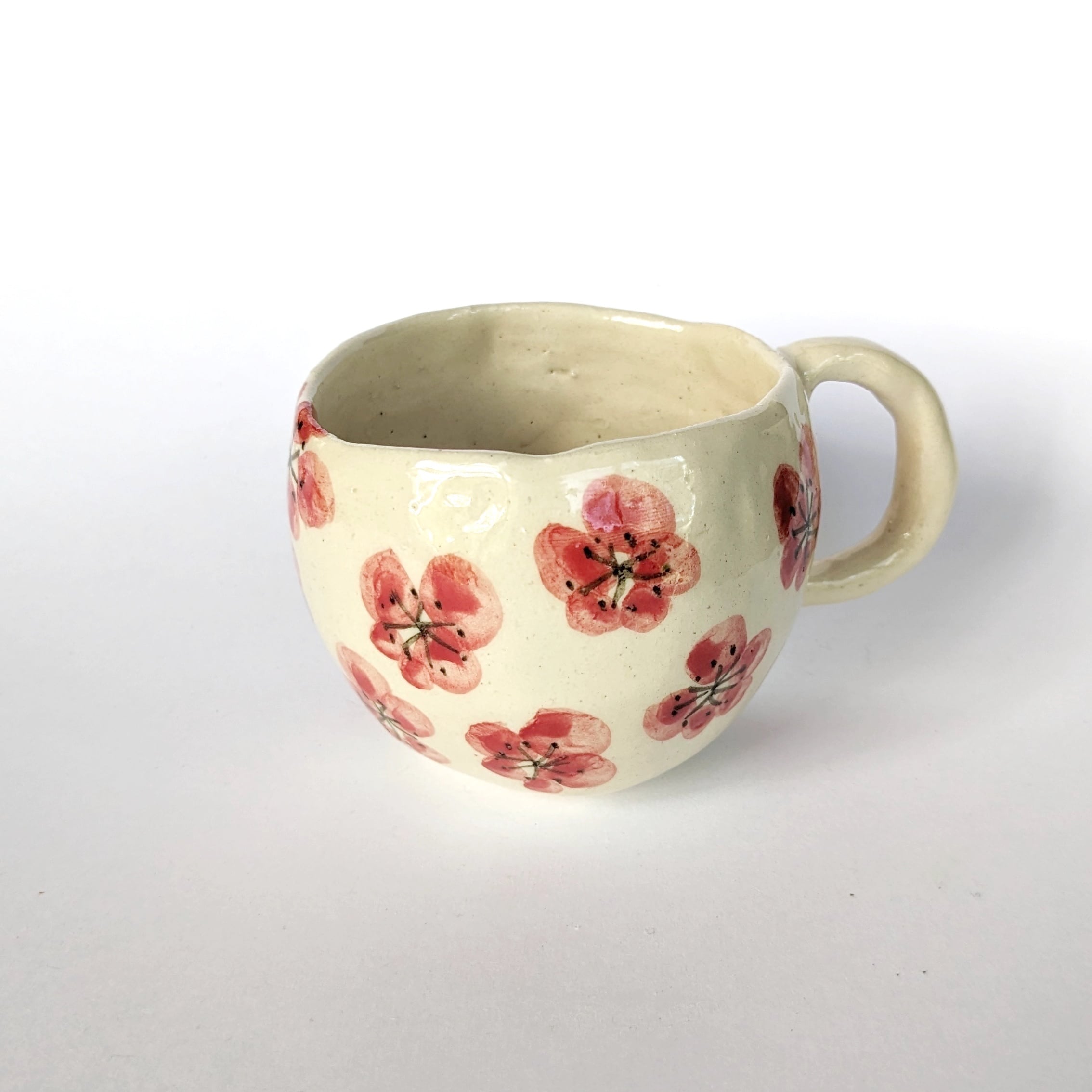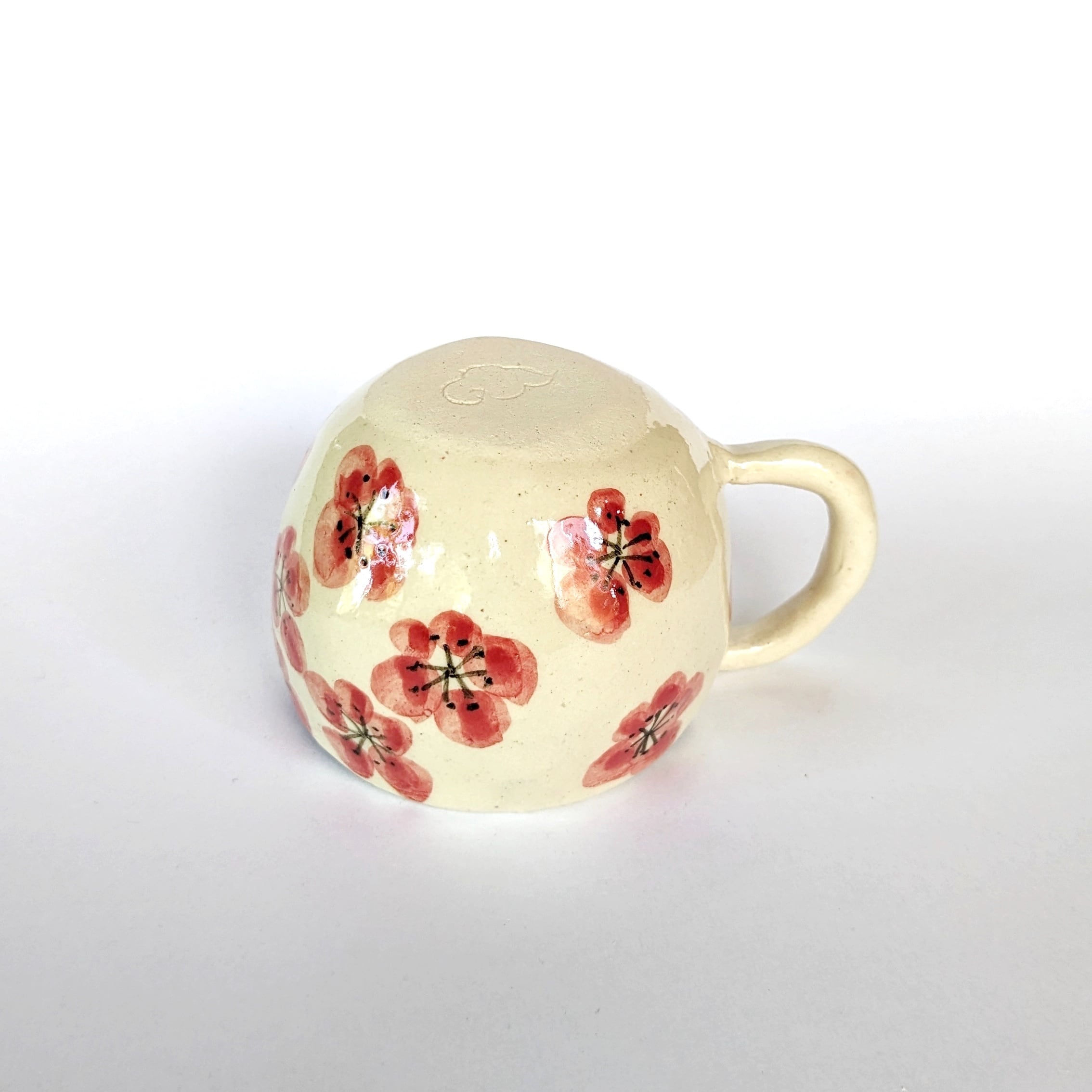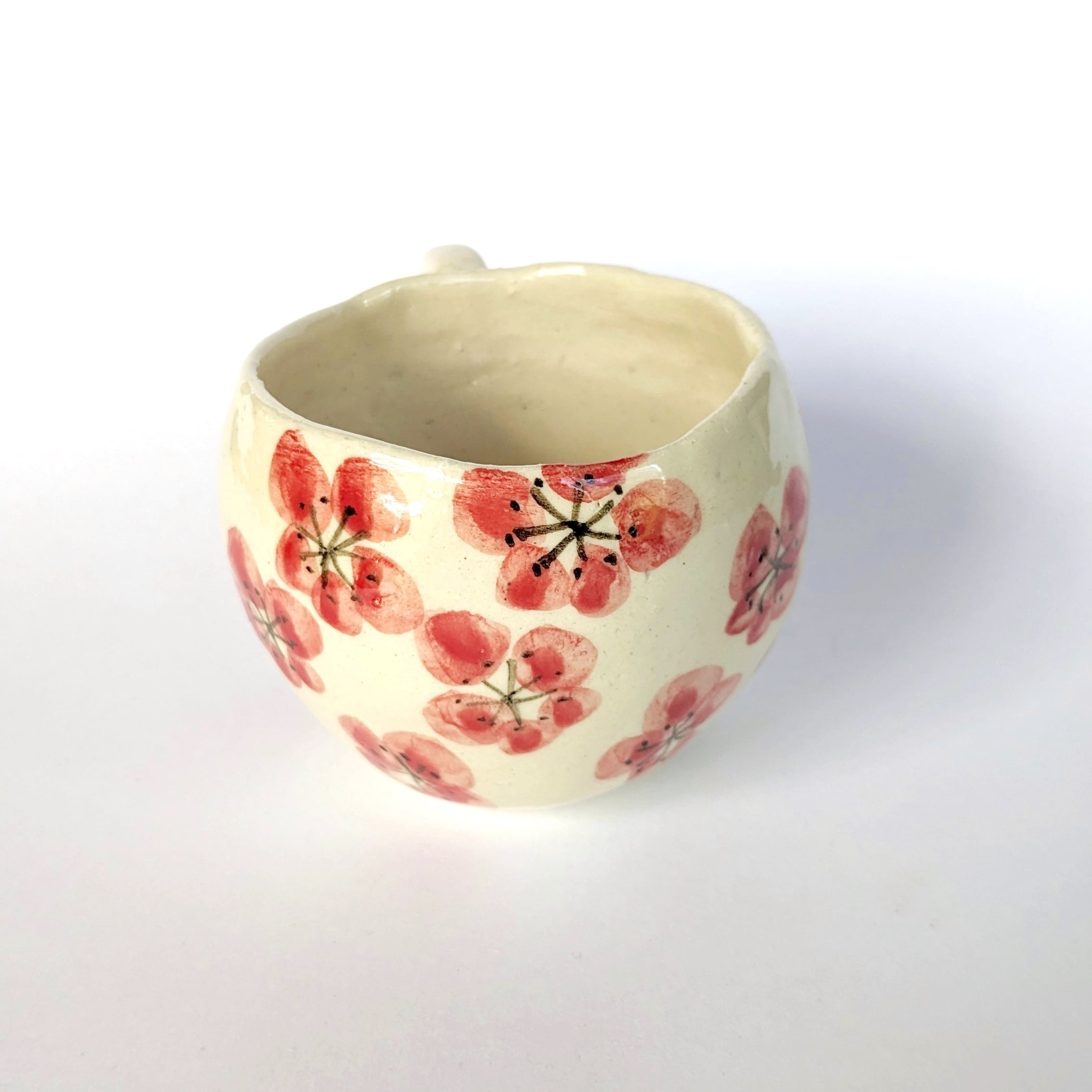 定番の梅の花模様をあしらったコーヒーカップです。コロンとした丸みを強調したフォルムでかわいらしく仕上げています。
