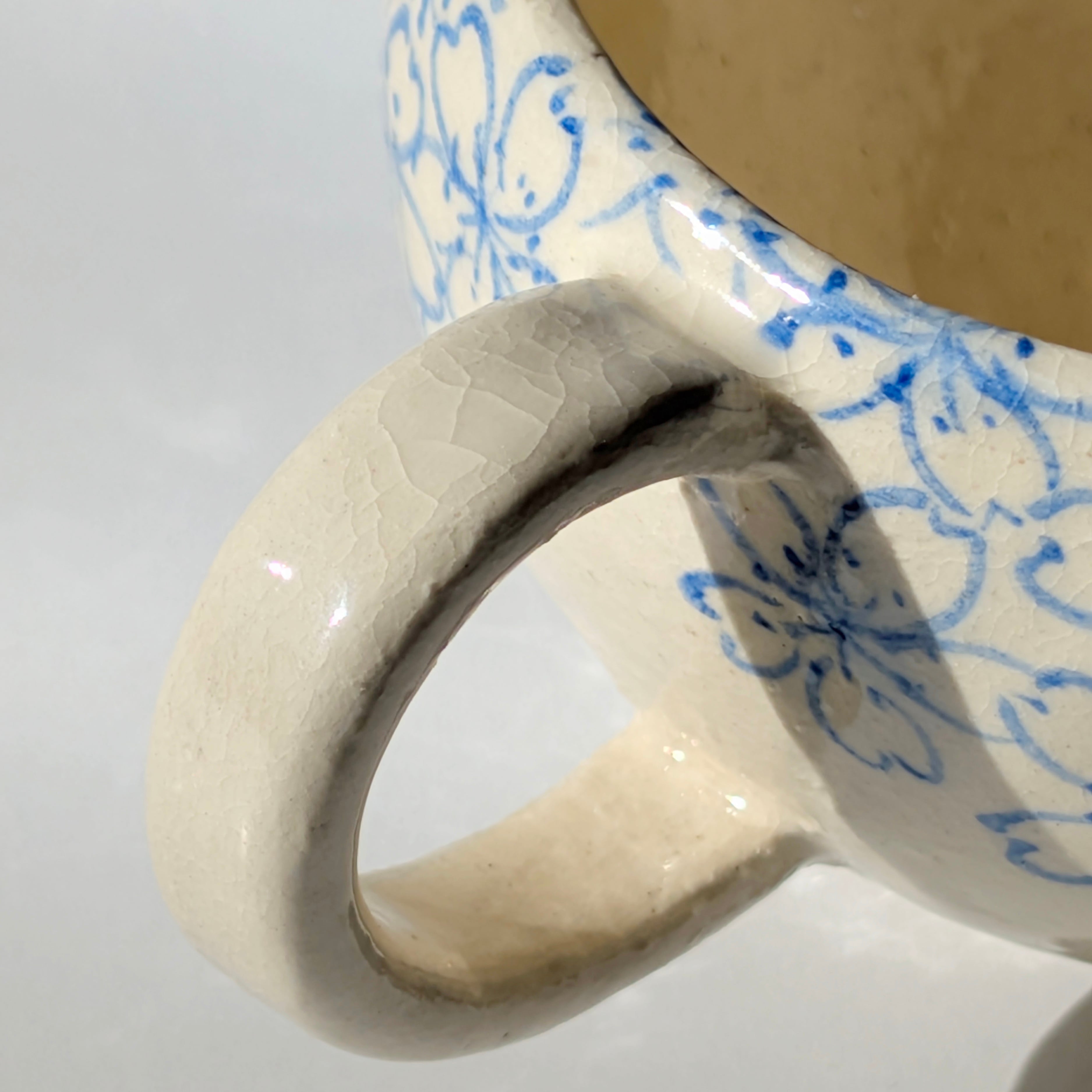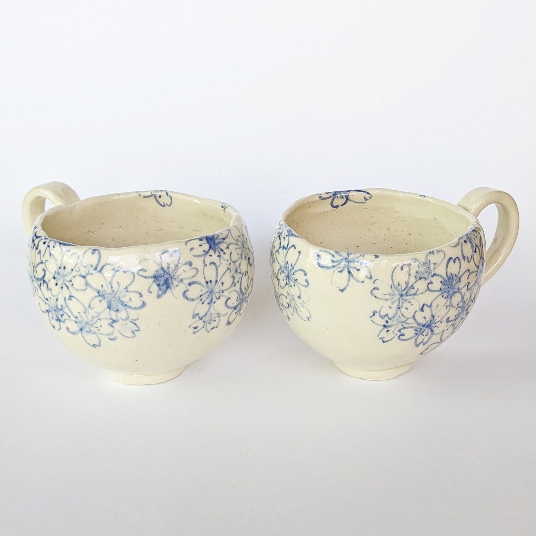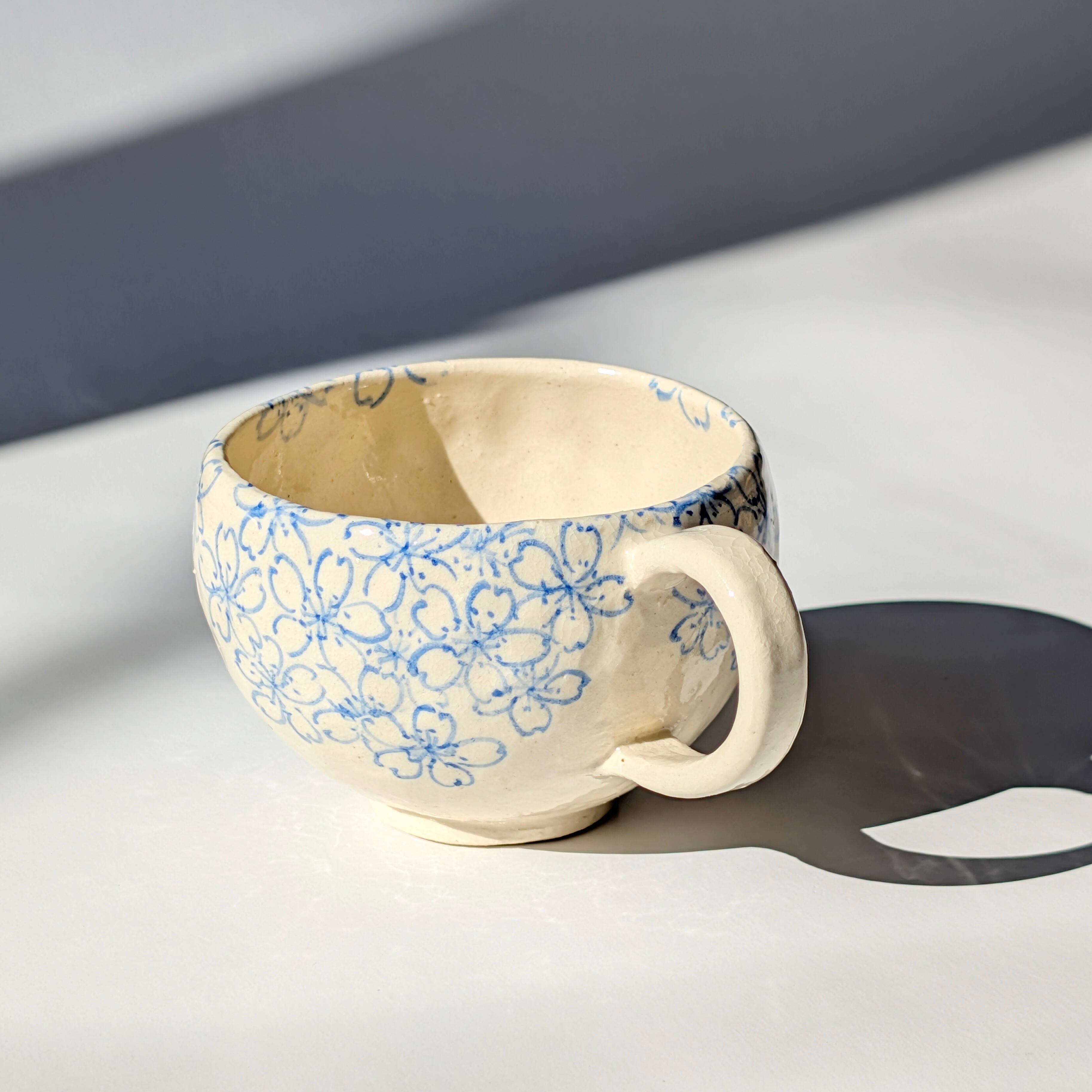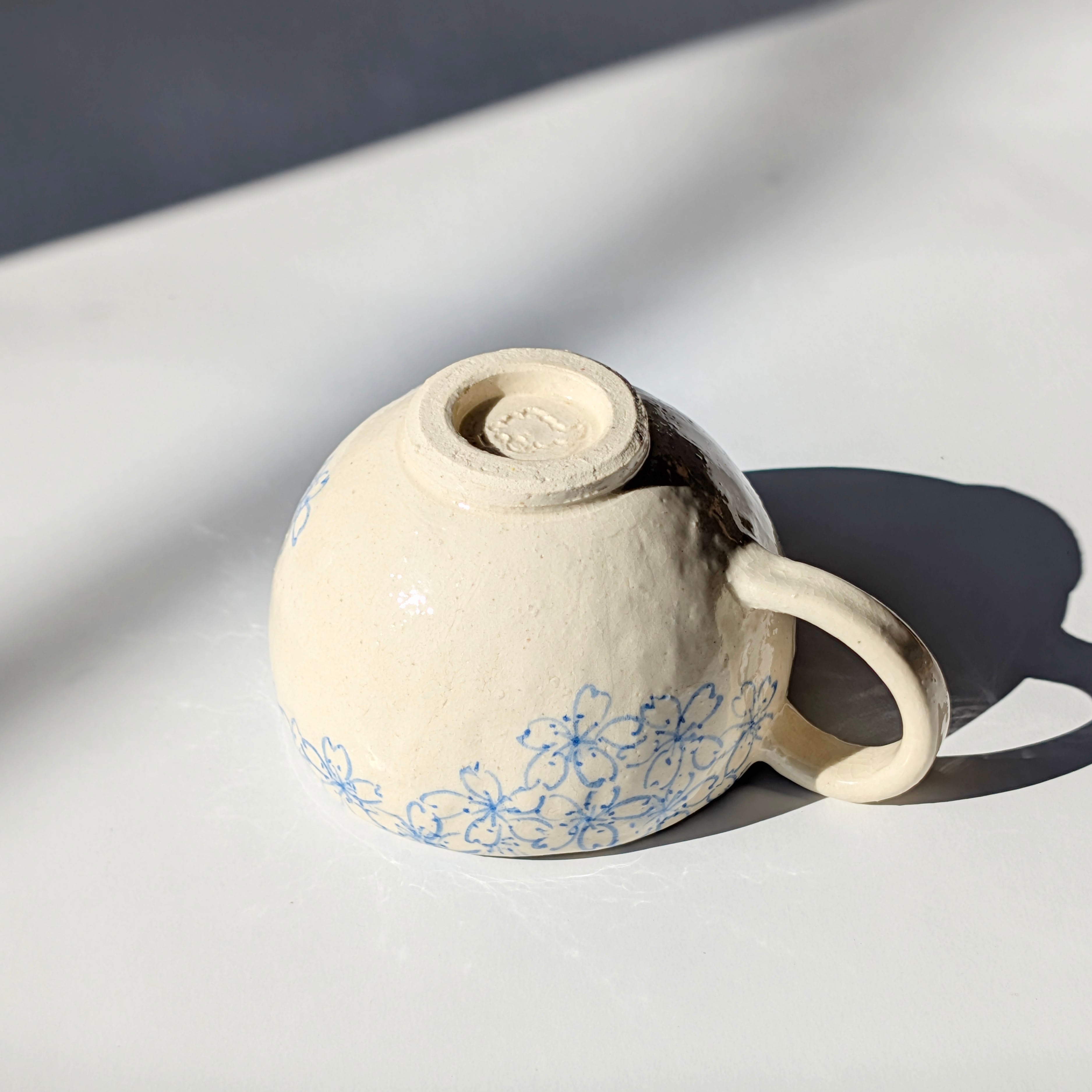 新作のコーヒーカップをご紹介いたします。このカップは、古い文様の桜模様を現代風にアレンジし、アンティークな雰囲気を醸し出しています。