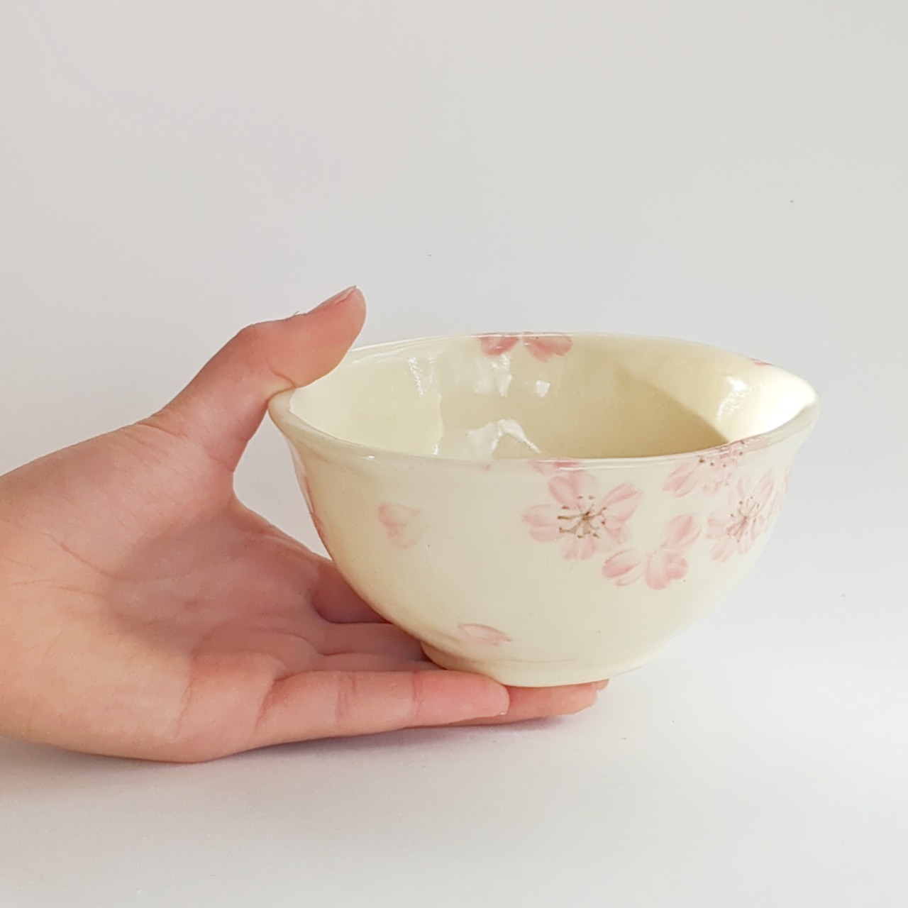 「土絵の具」で絵付けをしているので、花びらに凹凸や濃淡が生じている独特な風合いを楽しんでいただければ幸いです。