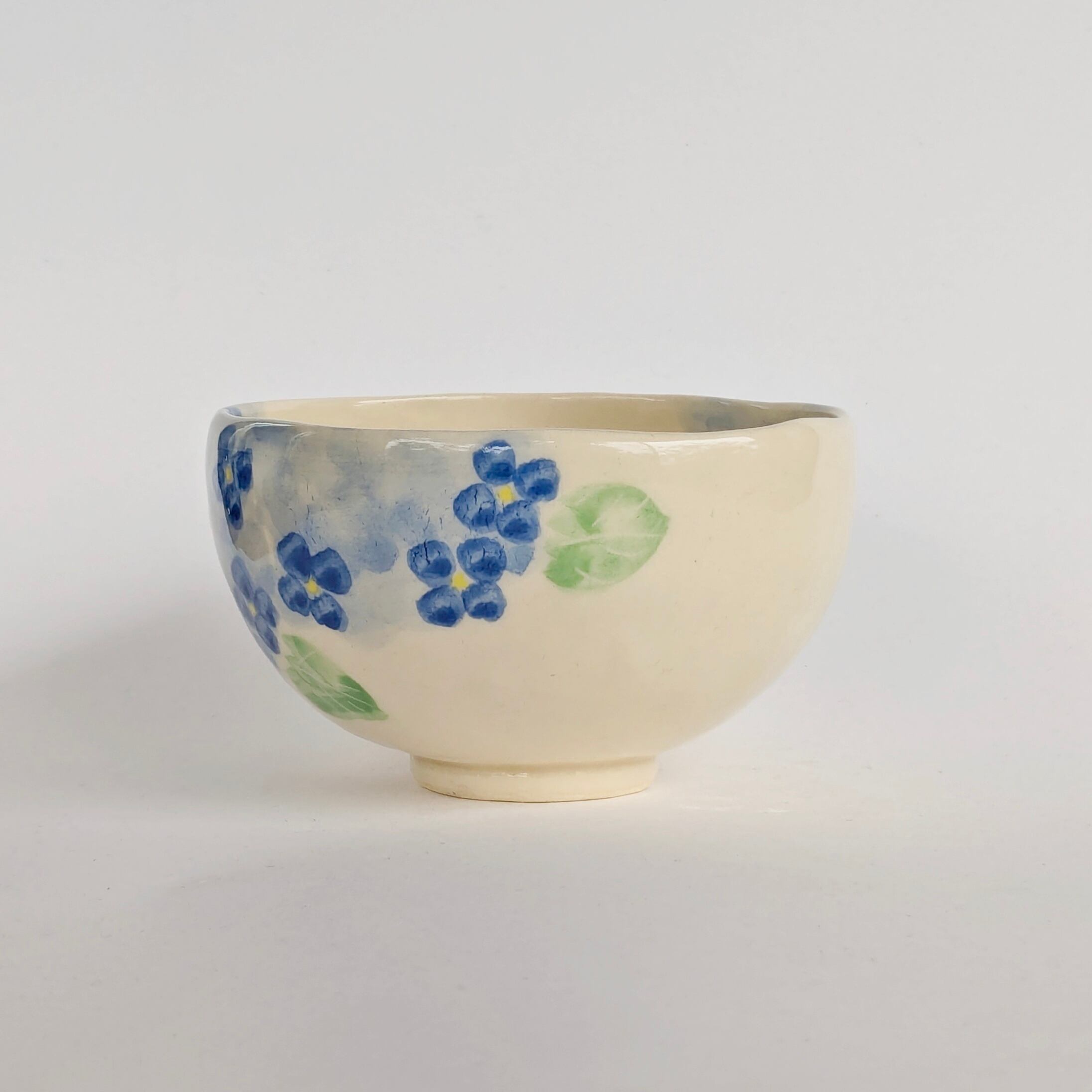 初夏の訪れを感じる美しい紫陽花をモチーフに、木陰でひっそり咲くその姿をイメージし、ほのかな色彩で絵付けを施しました。