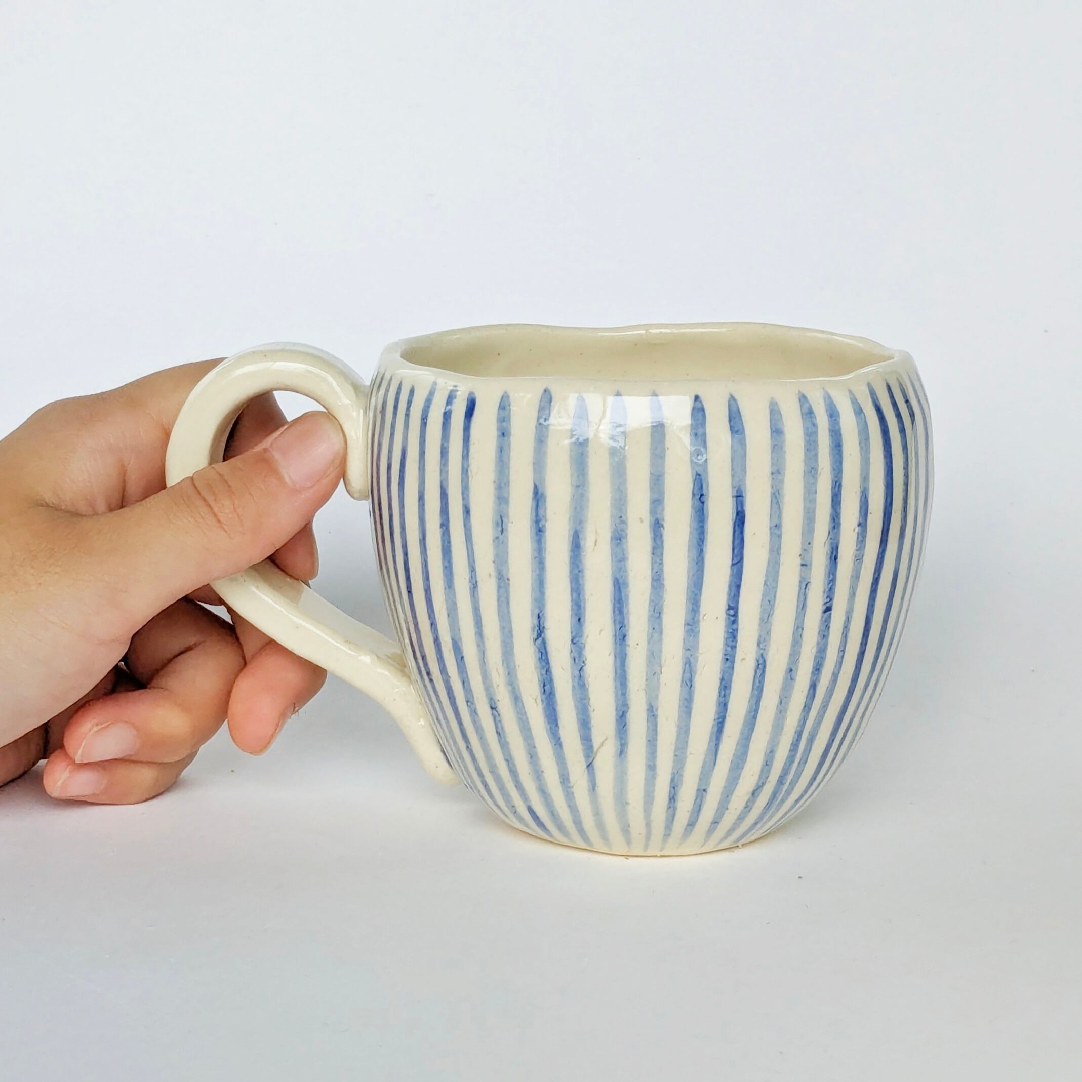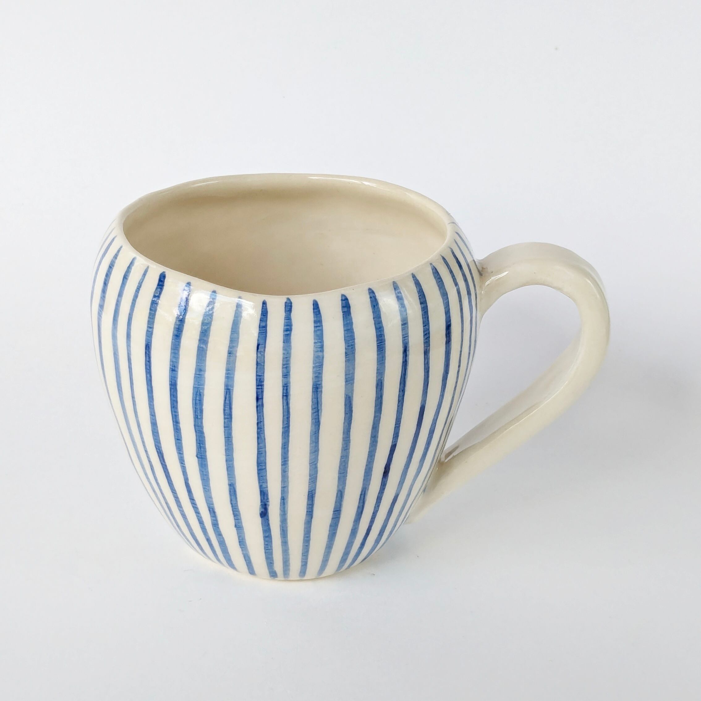 伝統的なトクサ模様のコーヒーカップです。トクサ模様をひきたてるために生地に白化粧をほどこしました。