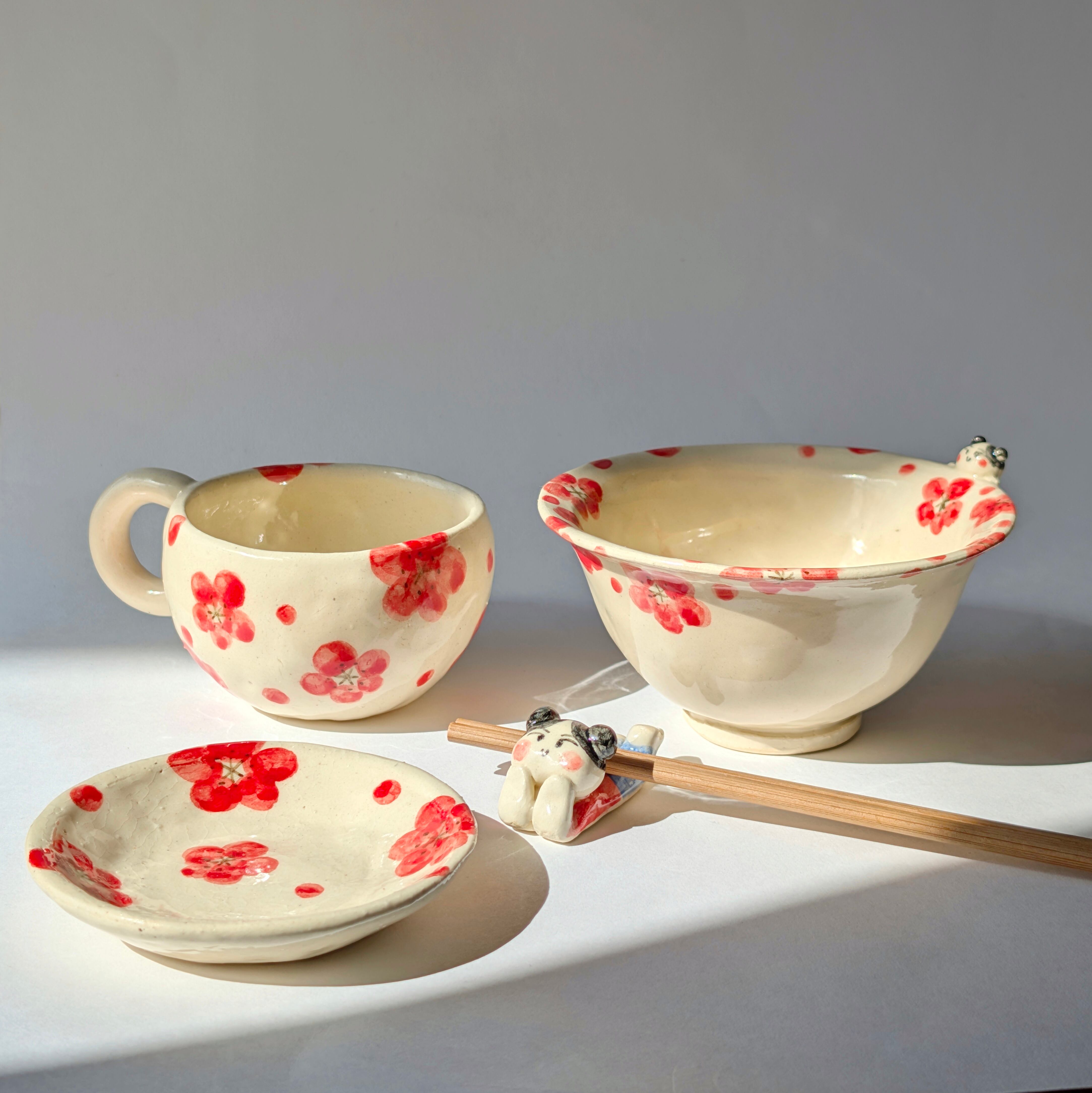 梅の花の模様が美しい器:春の食卓を華やかに彩ります。